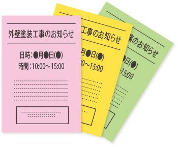 説明会の資料は施工会社が用意してくれます。説明会当日の1〜2週間前には資料を配布するなど、なるべく多くの居住者が説明会に参加するように働きかけていくことが重要です。その上で、参加できなかった居住者にはしっかり事後説明することが後々のトラブル防止につながります。