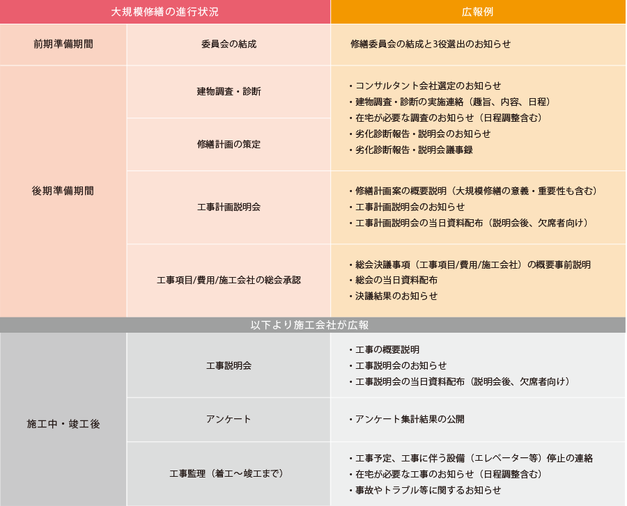 広報活動は大規模修繕の重要性を組合員に理解してもらうためのもっとも有効な手段の一つです。