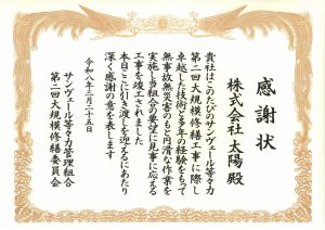 NEW!お知らせ2026.03.31サンヴェール等々力管理組合様より感謝状をいただきました