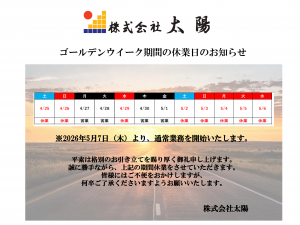 NEW!お知らせ2026.04.02ゴールデンウイーク期間の休業日のお知らせ