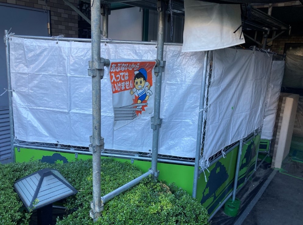 設置され、また仮囲い等を使用し居住者様に対して視覚的にも
