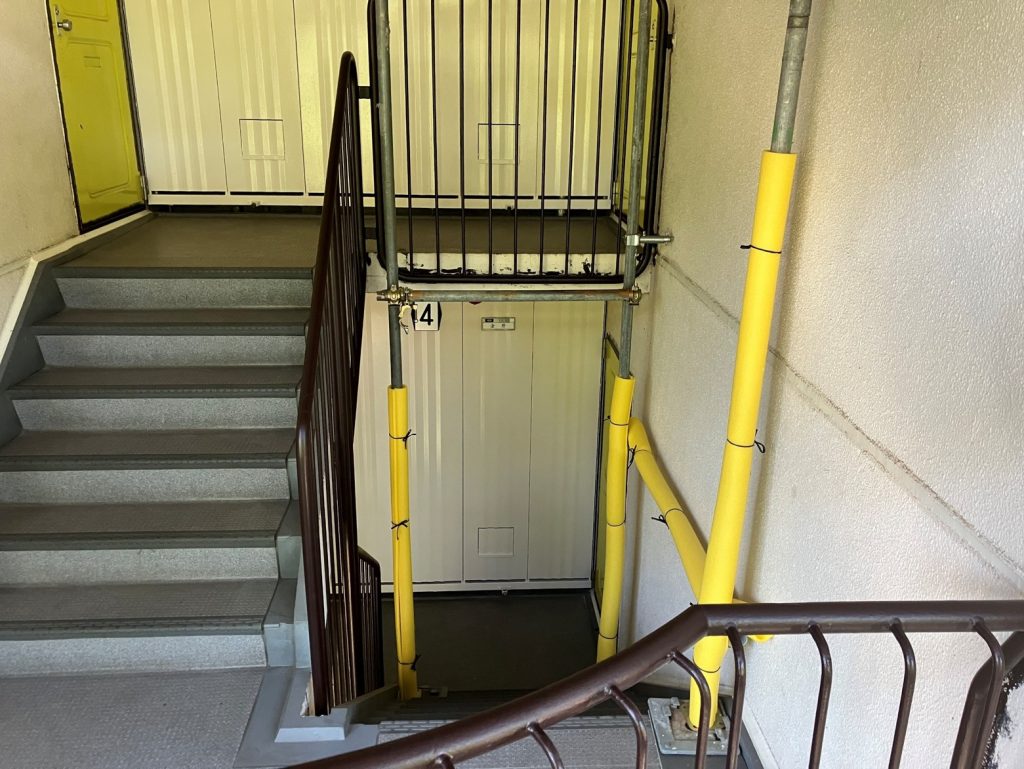 当マンションにはご高齢の方も多く、足元などの通路はいつも以上に安全に気を配らなければなりません。天井作業に必要な足場には、通路状に設置する部材にしっかりと緩衝材を取り付け、安全対策を行っていました。