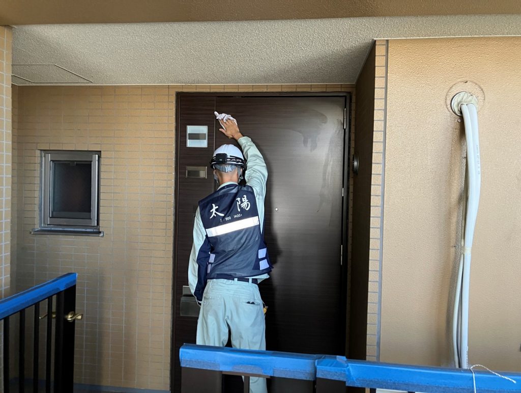 本日の一斉清掃は各部屋の玄関ドアを現場全員で掃除をしました。