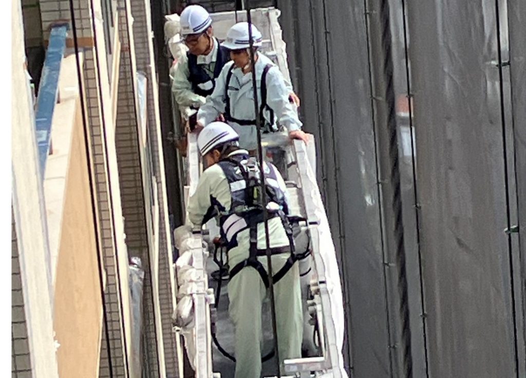 当マンションでは、建物の一面にゴンドラを設置しています。通常の足場と違い、作業時に想定される危険の種類も変わってきます。