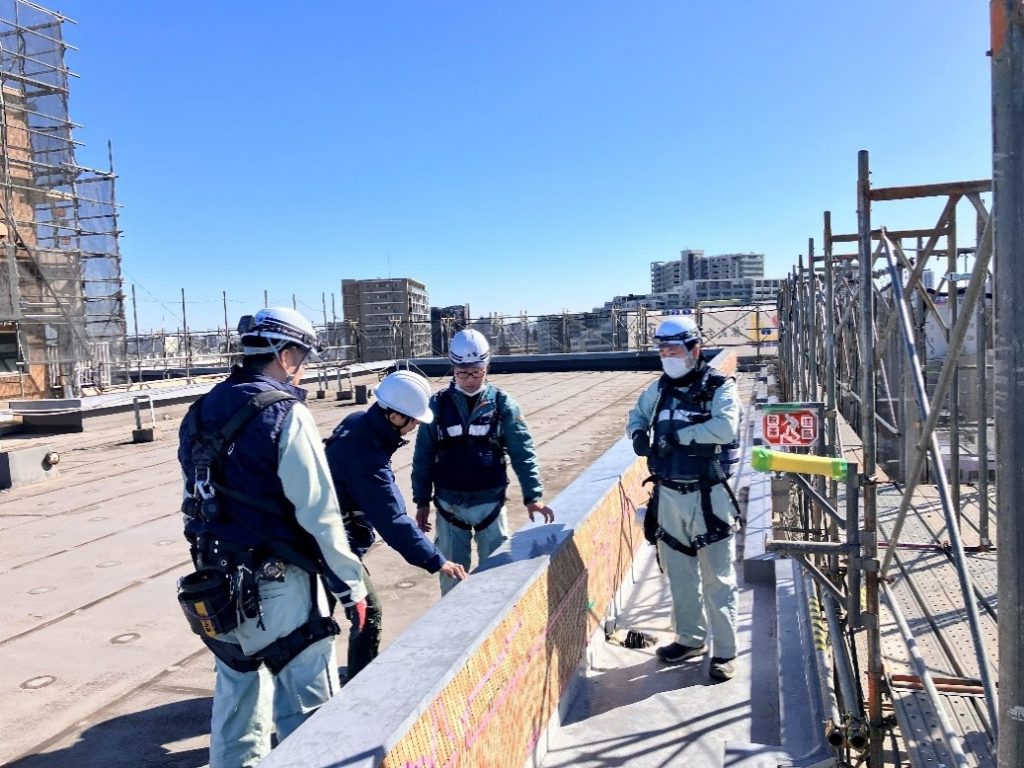 当現場では、この狭小部に親綱を張り巡らせ、作業員が安全帯を確実に掛けられるようにしていました。こうした対策により、万が一の場合でも転落を防ぎ、安全性を高い水準で確保していました。